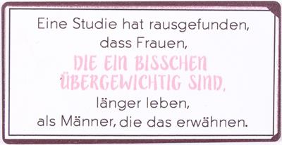 La Finesse„Eine Studie hat rausgefunden, dass Frauen, die ein bisschen übergewichtig sind, länger leben als Männer, die das erwähnen.“ Dieser Magnet ist ein ...