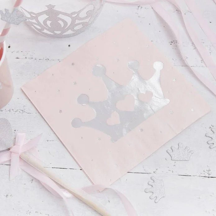 Ginger RayThese lovely paper napkins in pink with a silver crown are of course only suitable for a princess party. Each pack contains 16 napkins. When unfol...